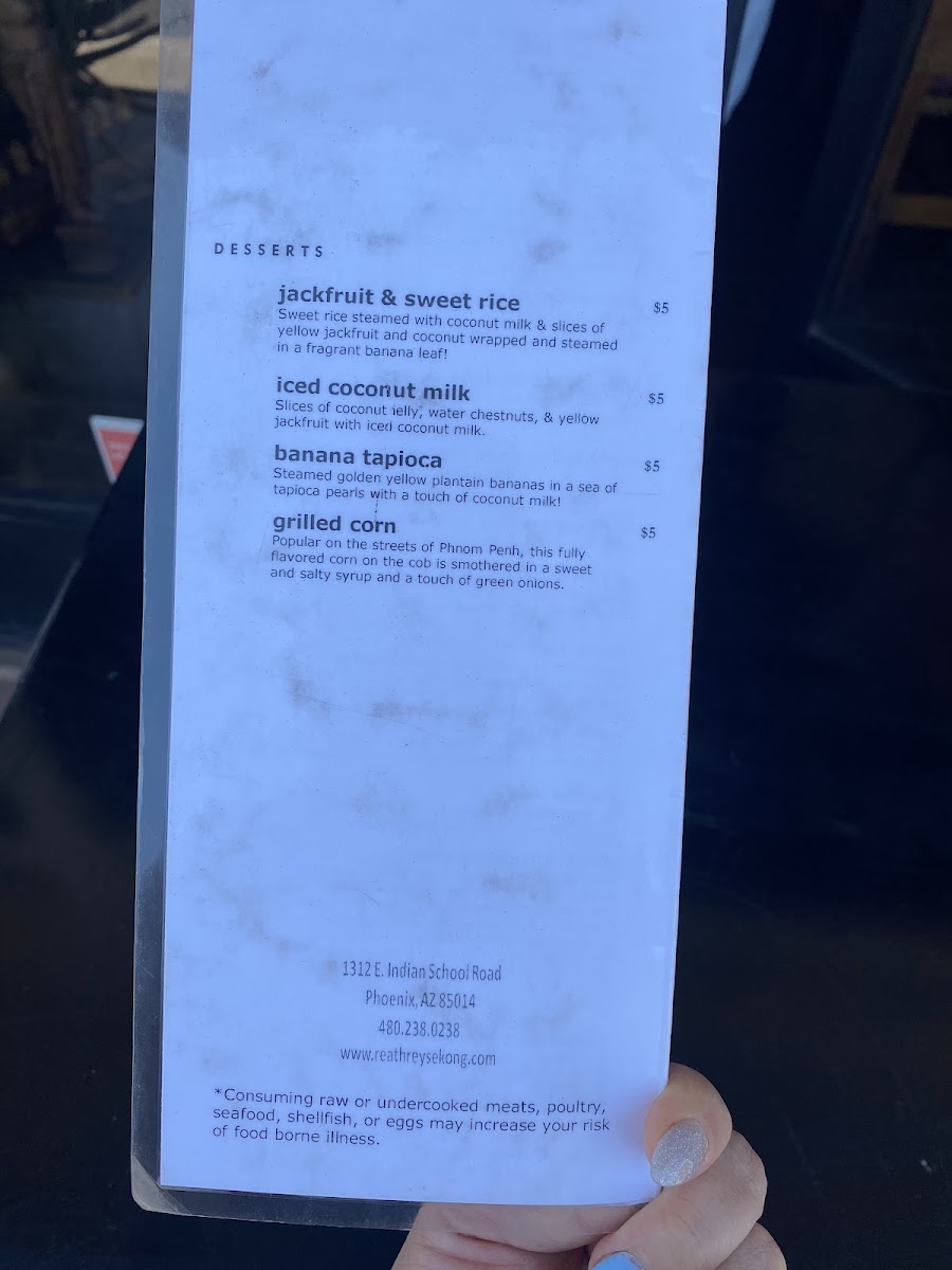 Reathrey Sekong Menu